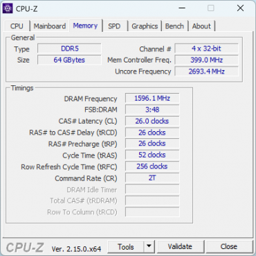 | Оперативная память | 2 ×32 ГБ DDR5-6400 Micron MTC16C2085S1VC64BD1, двухканальный режим; максимальный объем 96 ГБ | |