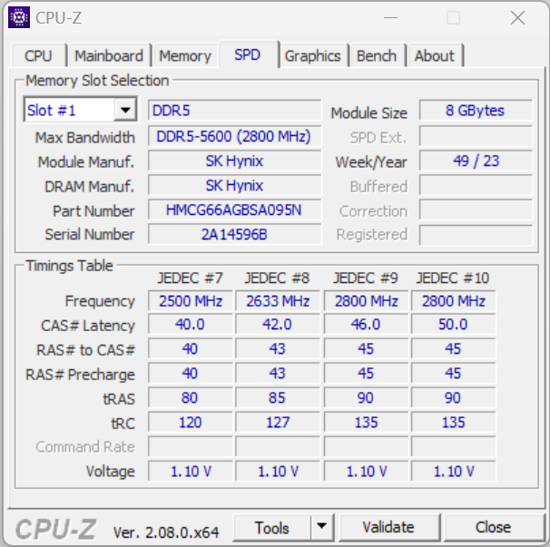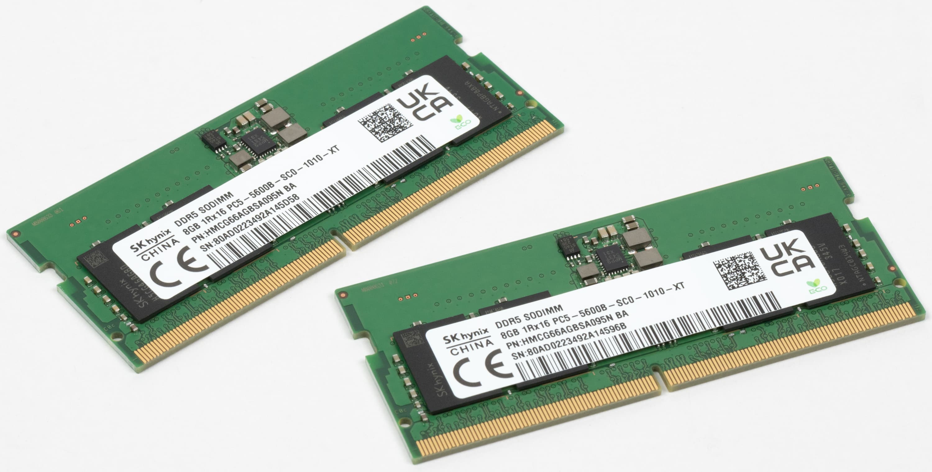 ОЗУ DDR5-5600 представлено двумя модулями SO-DIMM по 8 ГБ SK Hynix HMCG66AGBSA095.