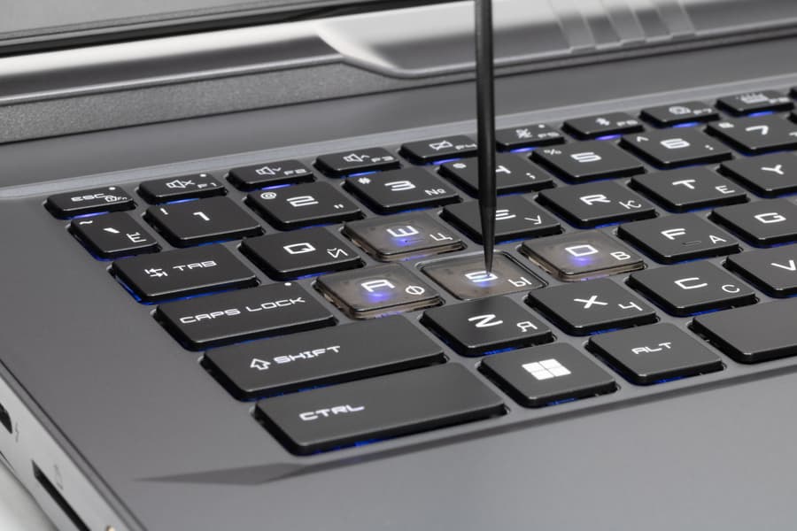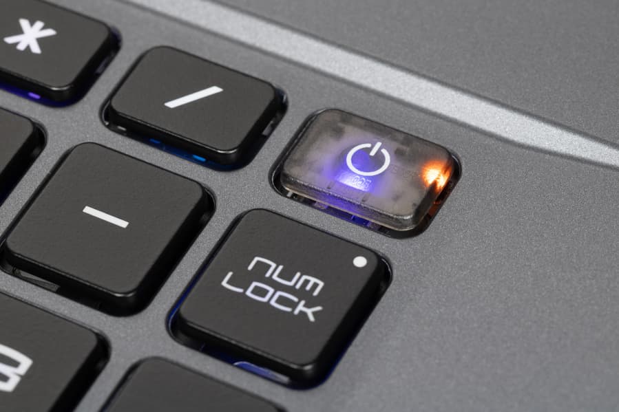 Кнопка включения питания располагается в правом верхнем углу поля клавиатуры и отличается от окружающих внешним видом и наличием отдельного светодиода.
