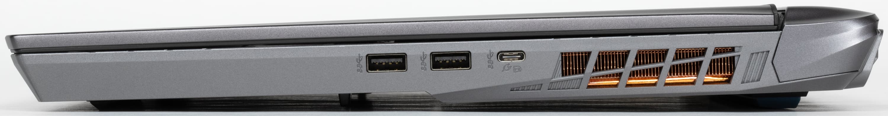 Справа расположены два порта USB 3.2 Gen1 Type-A и один USB 3.2 Gen2 Type-C (с поддержкой PowerDelivery и DisplayPort), а также боковая решетка выходного тракта системы охлаждения.