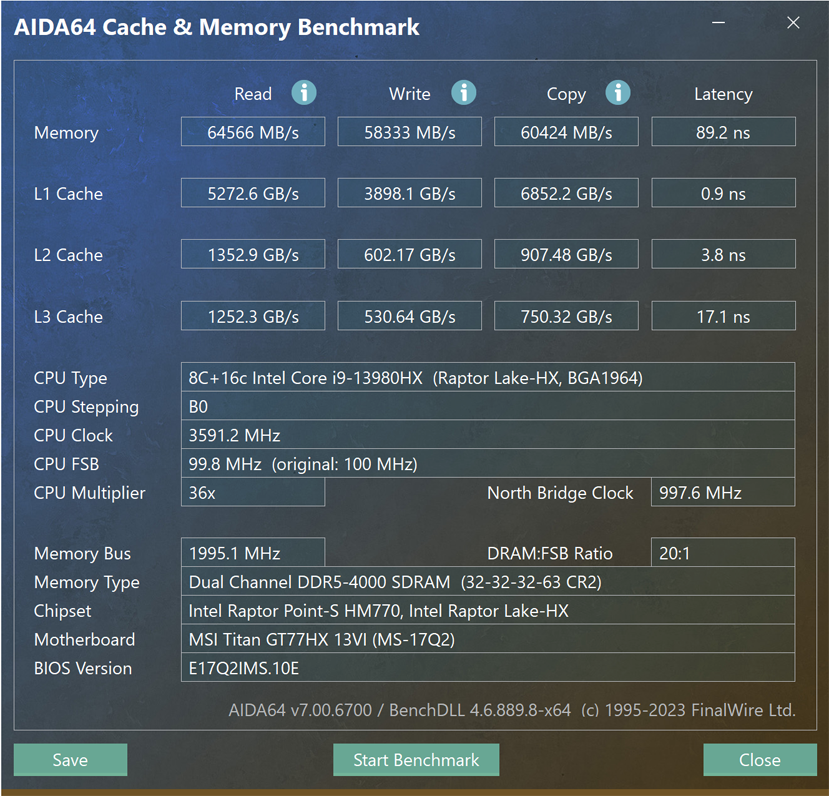 Заметно, что по скоростным показателям памяти герой обзора опережает «одноклубника» MSI Titan GT 77 GT77 HX 13VI и почти на равных конкурирует с Maibenben X639.