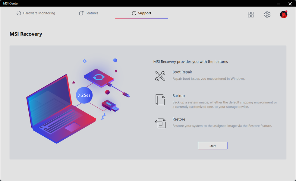 Из штатных модулей — MSI Recovery дает возможность восстановить систему или отремонтировать только ее загрузчик.