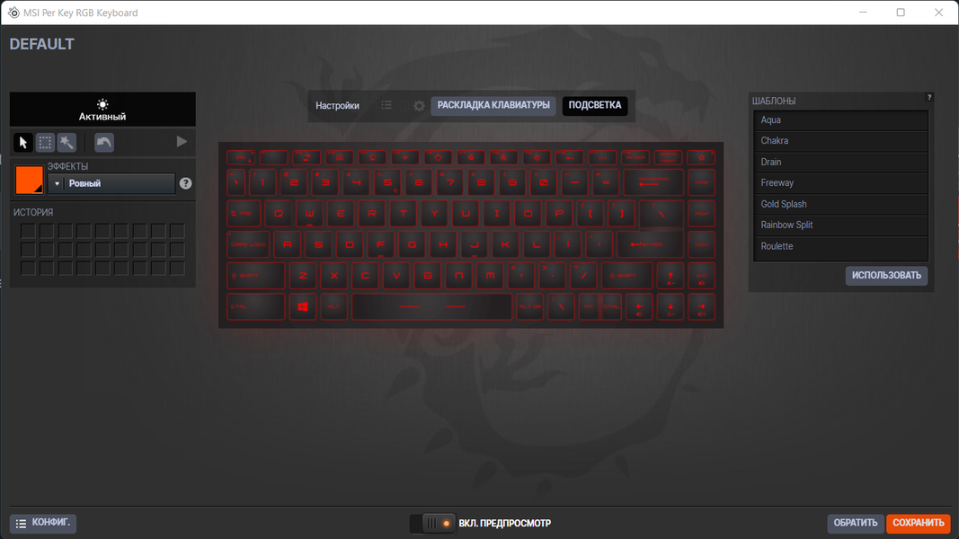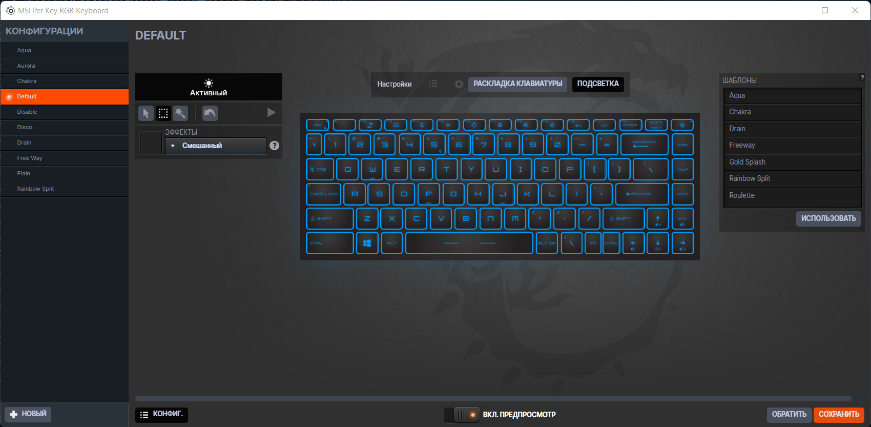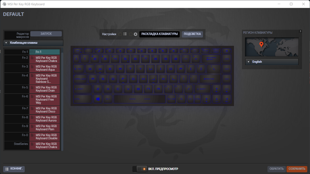 Можно назначить цвет и характер свечения хоть каждому из элементов клавиатуры по отдельности.