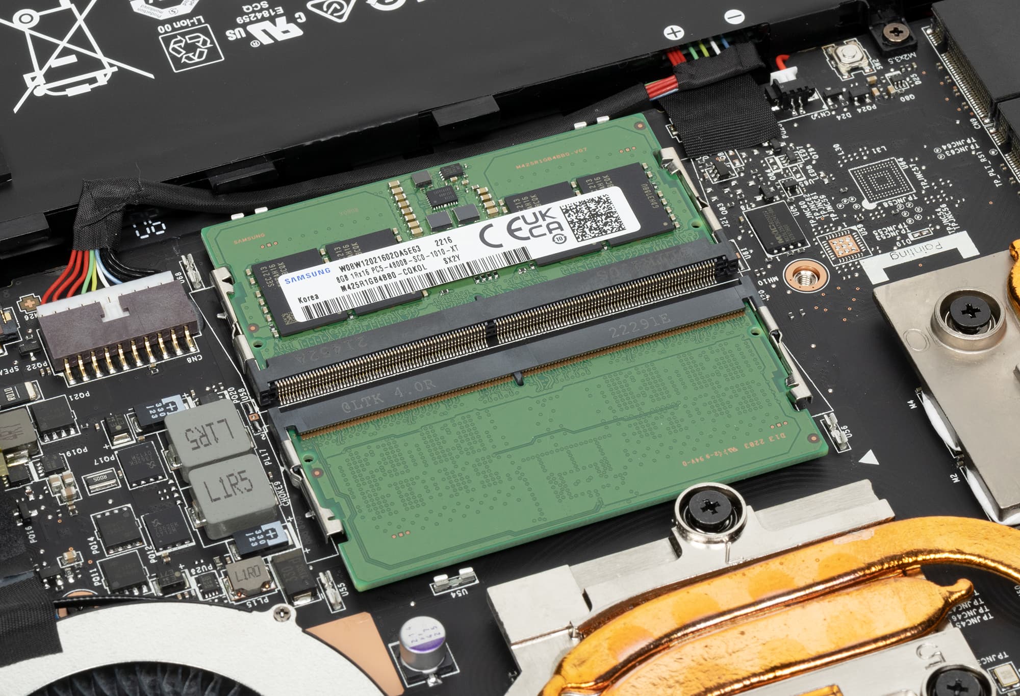 Процессоры Alder Lake работают с оперативной памятью DDR4 и DDR5. В нашем ноутбуке установлены модули DDR5-4800, которые демонстрируют имеют высокие скорости под стать игровой машине.
