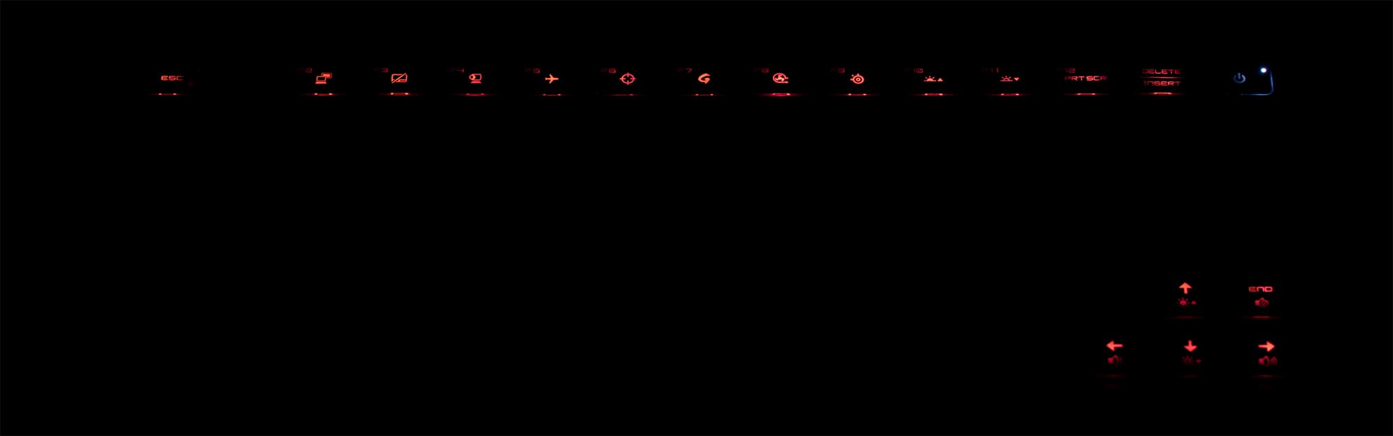 При нажатии на клавишу «регистра функций» (Fn) автоматически и независимо от состояния динамической подсветки включается красная индикация функциональных клавиш. Это помогает с выбором нужного элемента при работе в темноте.