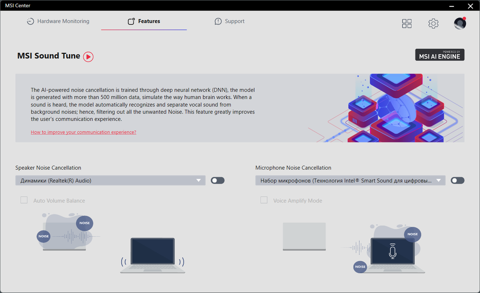 Производитель активно продвигает возможности аудионастроек при помощи отдельной утилиты Nahimic.