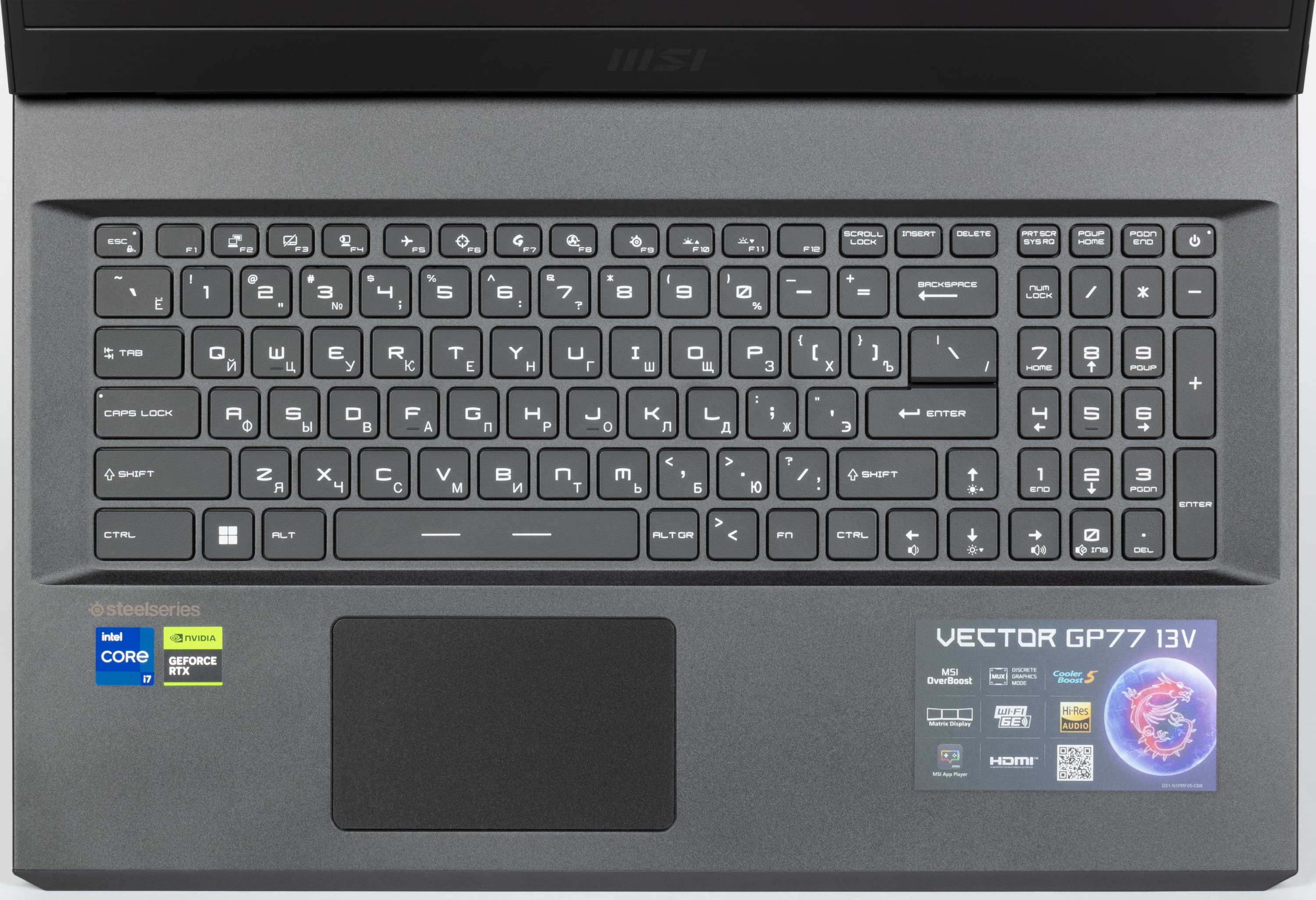 MSI Vector GP77 13V поставляется с установленной ОС Windows 11 Home, триал-версией Microsoft Office, сетап-инициатором Яндекс, приложениями для управления акустикой (Nahimic) и комплектом фирменных утилит с общим названием MSI Center. Последний переведен на русский язык лишь частично и, видимо, впопыхах, поскольку содержит ошибки.