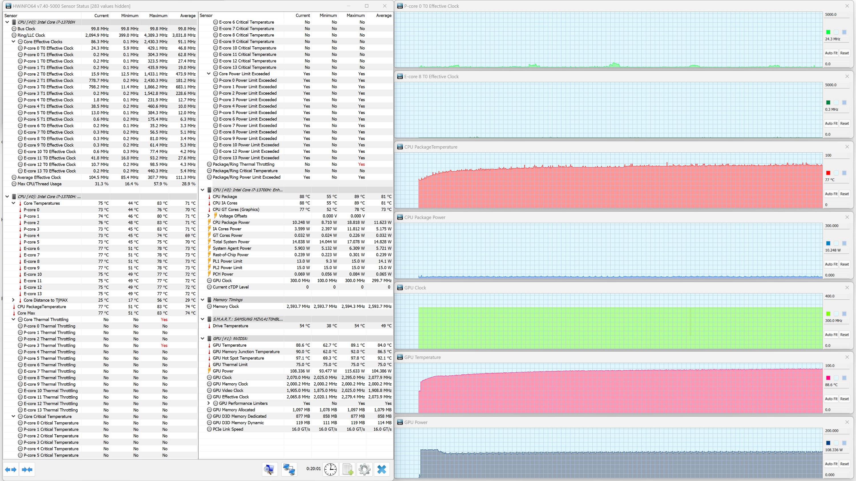 MSI Vector GP77 13V располагает 16 ГБ оперативной памяти. представленной двумя равноценными модулями по 8 ГБ (SK Hynix SO-DIMM DDR5-5600).