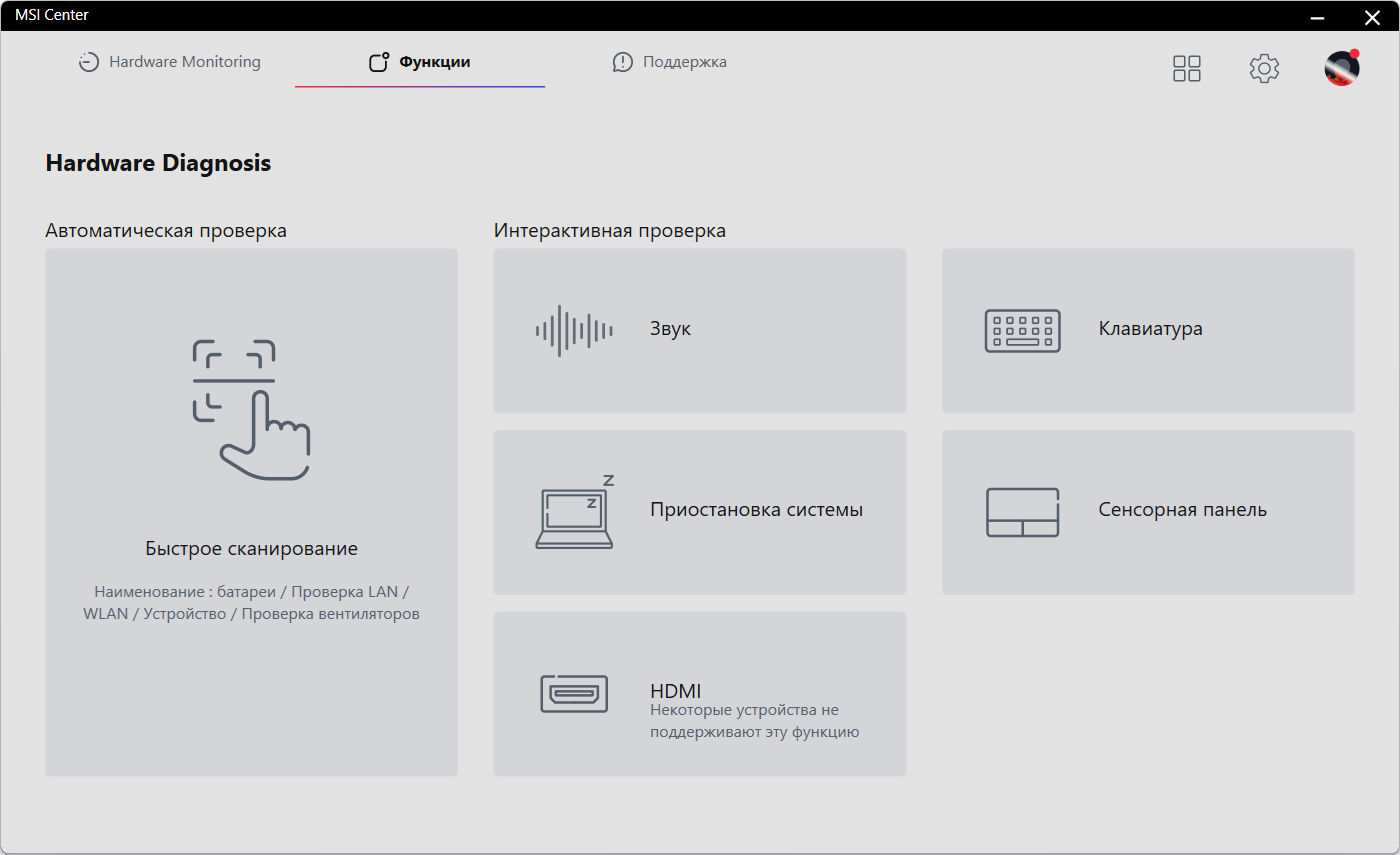 Hardware Analysis («аппаратный анализ») может протестировать оборудование и выдать отчет о его работоспособности.