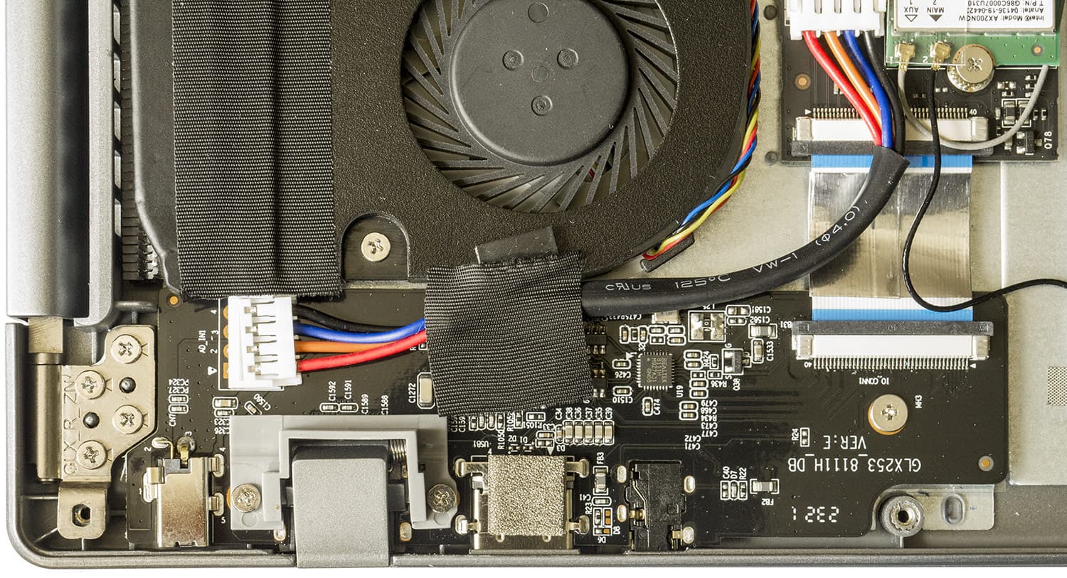 На заднем торце корпуса есть более крупные прорези, через которые система вентиляции выбрасывает нагретый воздух. Получается подогрев нижней части экрана, но во время запуска «тяжелых» тестов выяснилось: не слишком ощутимый.
