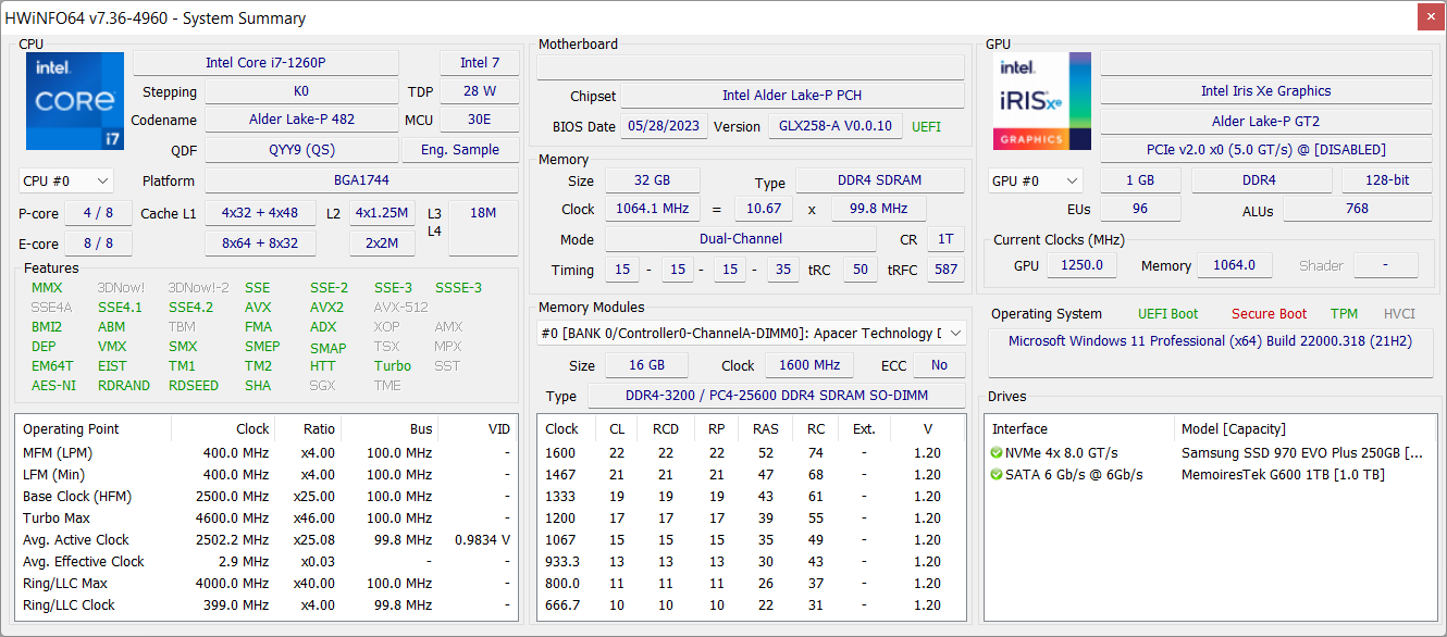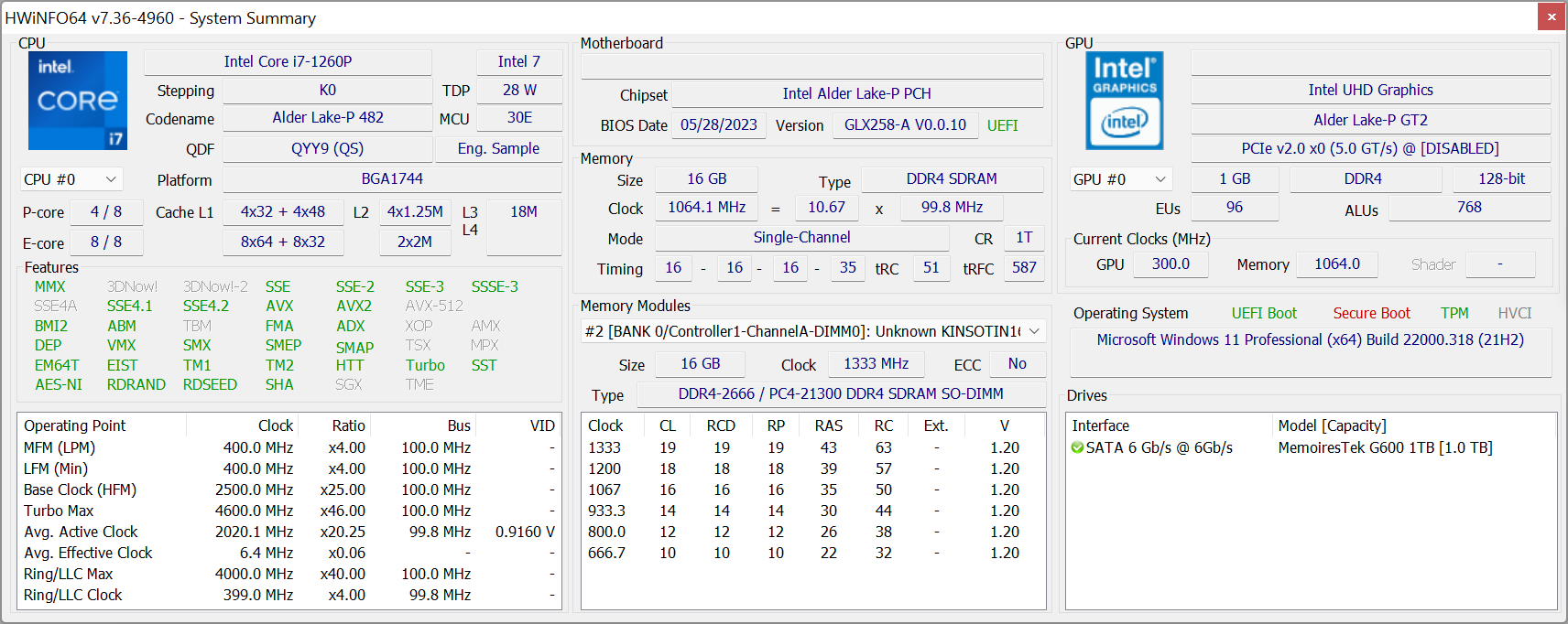 | Процессор | Intel Core i7-1260P (4+8 ядер/16 потоков, до 3,4/4,7 ГГц, 20—64 Вт) | |