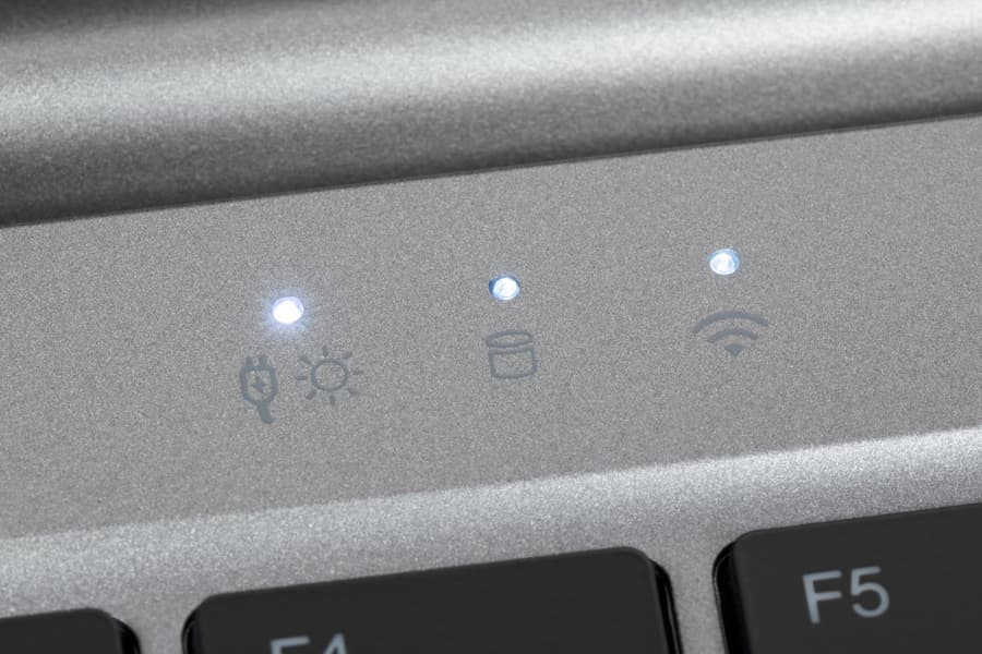 За функциональными клавишами F4, F5 расположены три крошечных светодиодных индикатора: питания, дисковой активности и работы Wi-Fi.