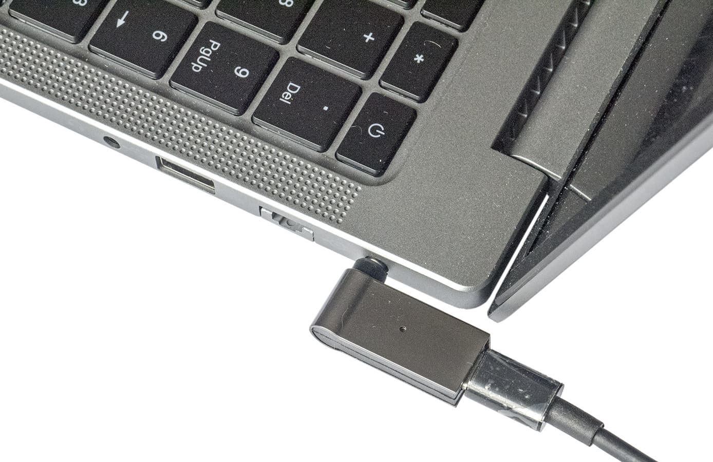 Несмотря на то, что имеющийся порт Type-C не может использоваться для питания ноутбука, работа от источника, поддерживающего 20-вольтовый режим Power Delivery с токами не менее 3,25 А (то есть 65 или 100 ватт), вполне возможна — напомним о существовании переходников-адаптеров, имеющих вход Type-C, а на выходе может быть любой из разъемов, имеющихся в ноутбуках.