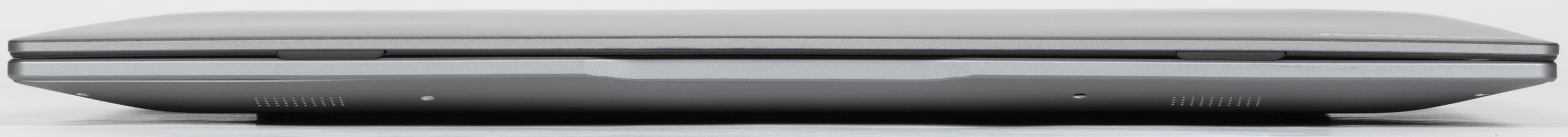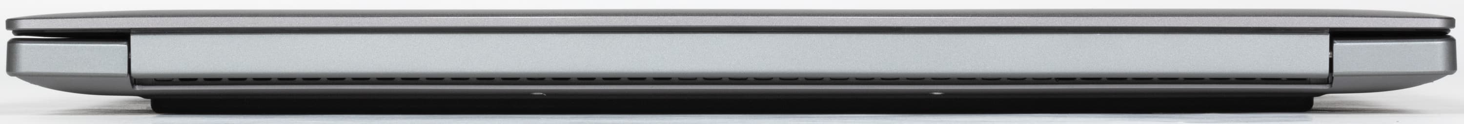Размеры нигде не указаны, поэтому делаем замер сами: получается 361×242 мм; лишь про толщину в описаниях есть упоминание значения 12 мм, но это явно «маленькая хитрость»: можно наизмерять даже меньше (около 10 мм), если делать это на самом краешке передней кромки, где корпус максимально сужается, а в реальности за передней ножкой толщина составляет 19,5 мм, у задней увеличивается до 22 мм, а с учетом самой этой ножки получается 26,5 мм. Собственно, не так уж плохо: не ультрабук, конечно, но уж точно тоньше игровых.