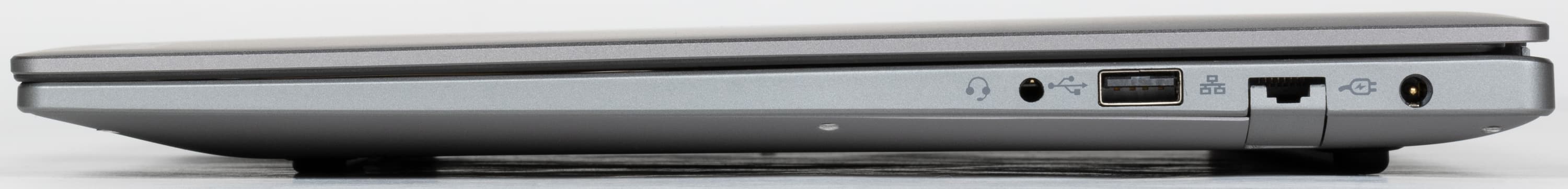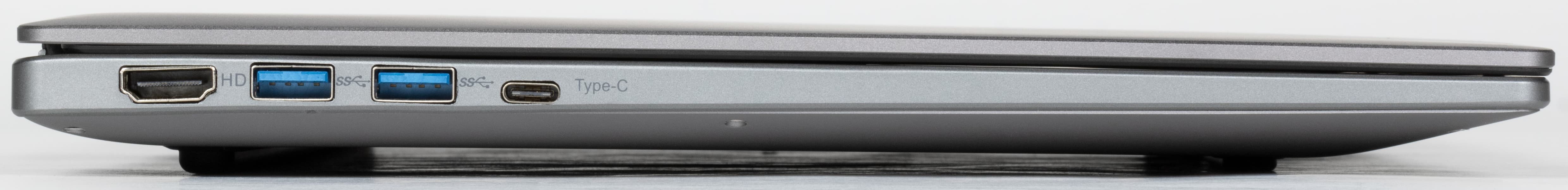 На левом боку имеются разъем HDMI, два порта USB 3.2 Gen1 Type-A и один USB 3.2 Gen1 Type-C, который можно использовать только для обмена данными — вывода видеосигнала и поддержки питания Power Delivery нет.