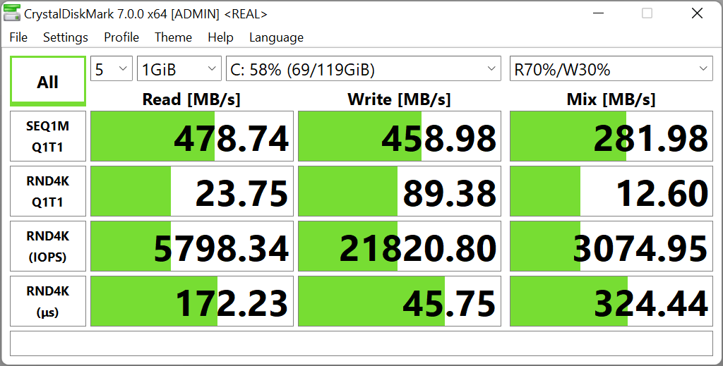 Но подчеркнем: речь про замену очень медленного накопителя — в нашем случае SATA меняем на NVMe, а заменять имеющийся SSD на другой, чуть более быстрый в специализированных тестах вроде CrystalDiskMark, вряд ли целесообразно: эффект будет скорее психологический, чем практический.