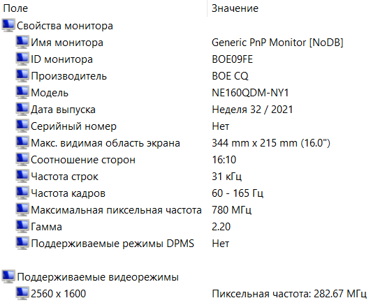| Экран | 16 дюймов, 2560×1600 (16:10), IPS (BOE NE160QDM-NY1), 165 Гц | |