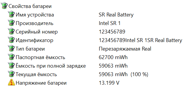 Теперь опробуем заряд с помощью адаптера из комплекта. В таблице приводим показания соответствующей оснастки Windows после автоотключения по уровню в 1%, на ноутбуке была загружена ОС:
