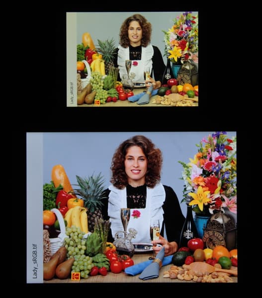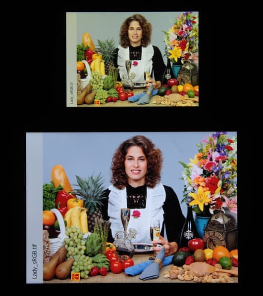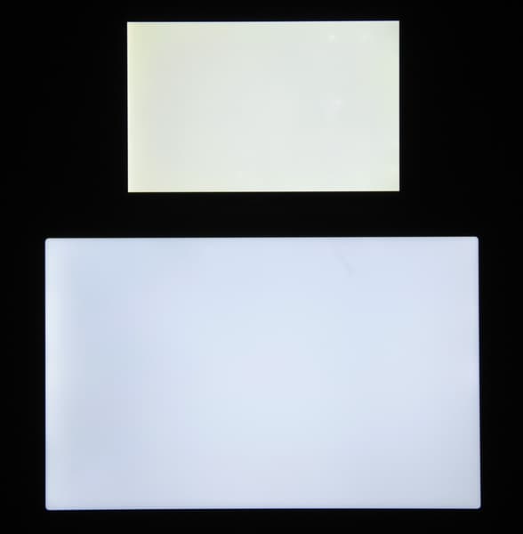 Отметим некоторую неравномерность яркости и цветового тона белого поля.