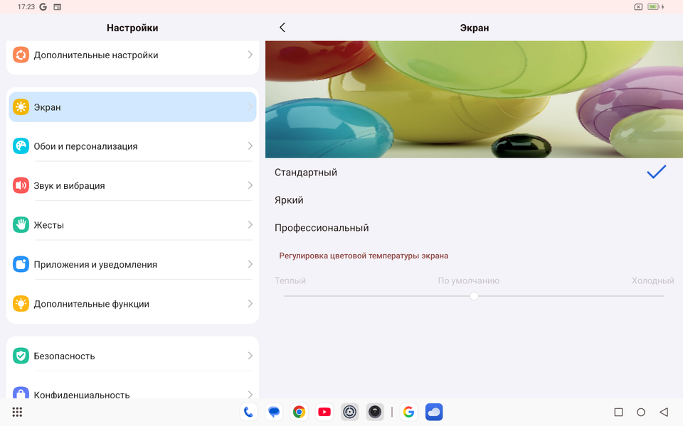 Фотография выше получена при активном профиле Стандартный (выбран по умолчанию) в настройках экрана, всего их три: