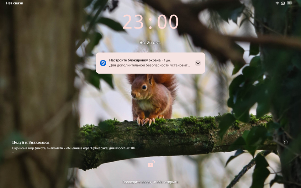 Ну и последнее. На экран блокировки с обоями по умолчанию выводится реклама, и в процессе тестирования мы заметили, например, вот такое интересное предложение.