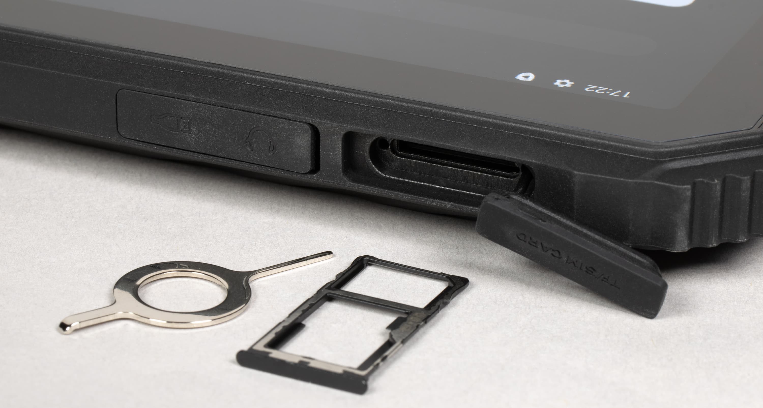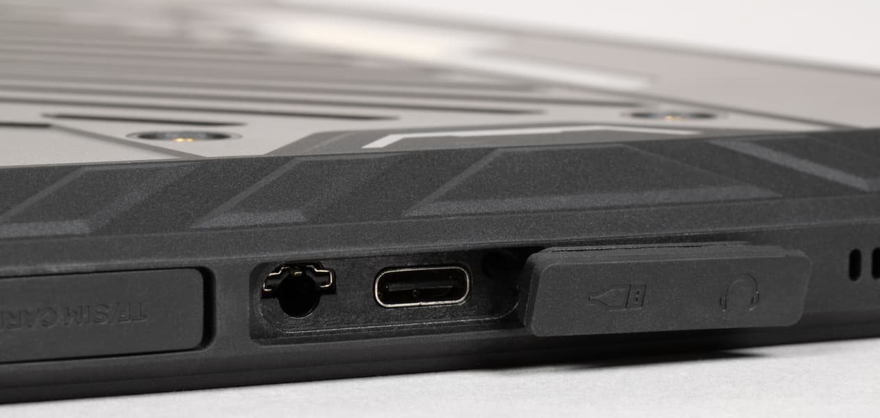 На правой грани размещены разъем USB-C (с поддержкой внешних накопителей, но стандарт устаревший, 2.0) и гнездо 3,5 мм для гарнитуры. Оба они защищены заглушкой, мешающей попаданию влаги.