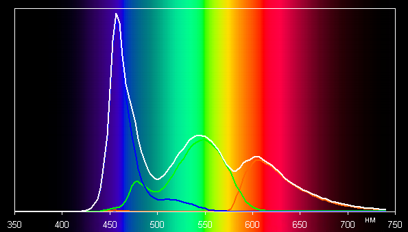 Спектры показывают, что светофильтры матрицы в умеренной степени подмешивают компоненты друг к другу: