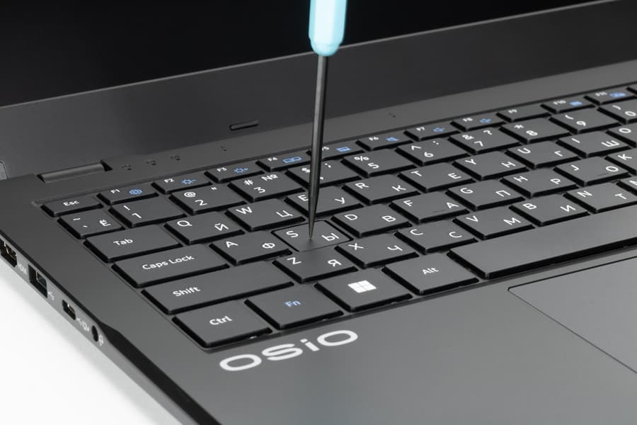 Кнопка Power находится справа в ряду функциональных клавиш — не самое удобное, но часто встречающееся решение.