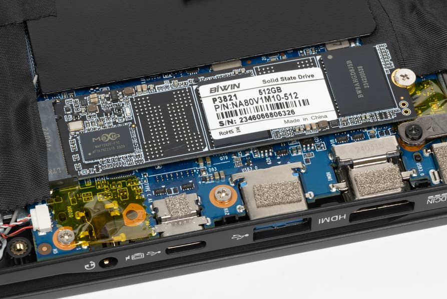 Возможности апгрейда ограничены: можно заменить имеющиеся модуль памяти и SSD. И надо заметить, что установленный накопитель имеет интерфейс не SATA, как часто бывает в близких по цене аналогах, а NVMe, и потому показывает в тестах более высокие результаты.