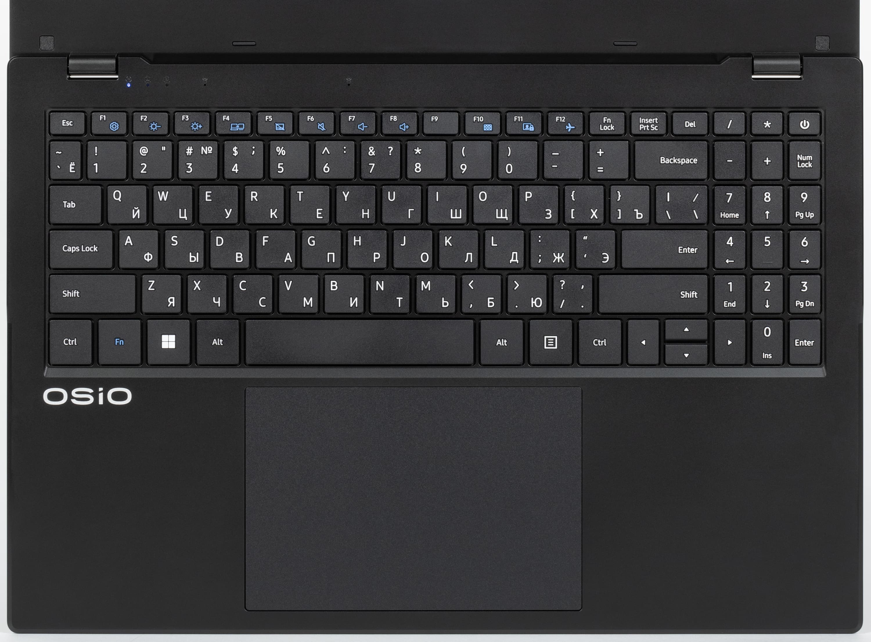 Впечатления от клавиатуры неоднозначные: минусы — отсутствие подсветки, уменьшенные клавиши со стрелками и кнопка Power в правом дальнем углу; к плюсам мы отнесем наличие цифрового блока, пусть и трехрядного.