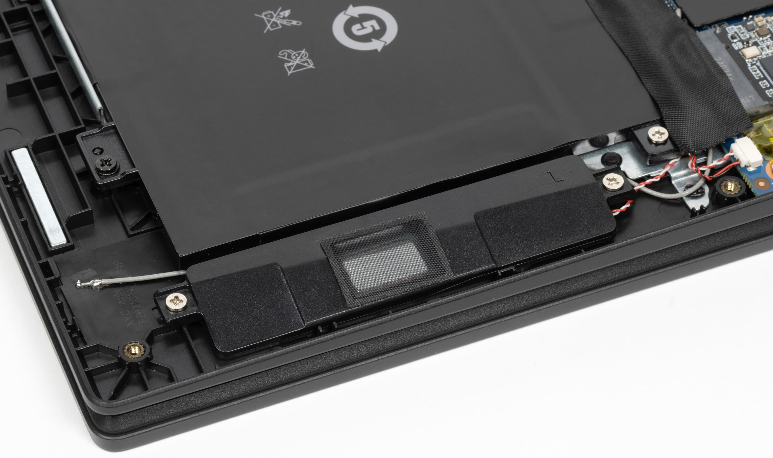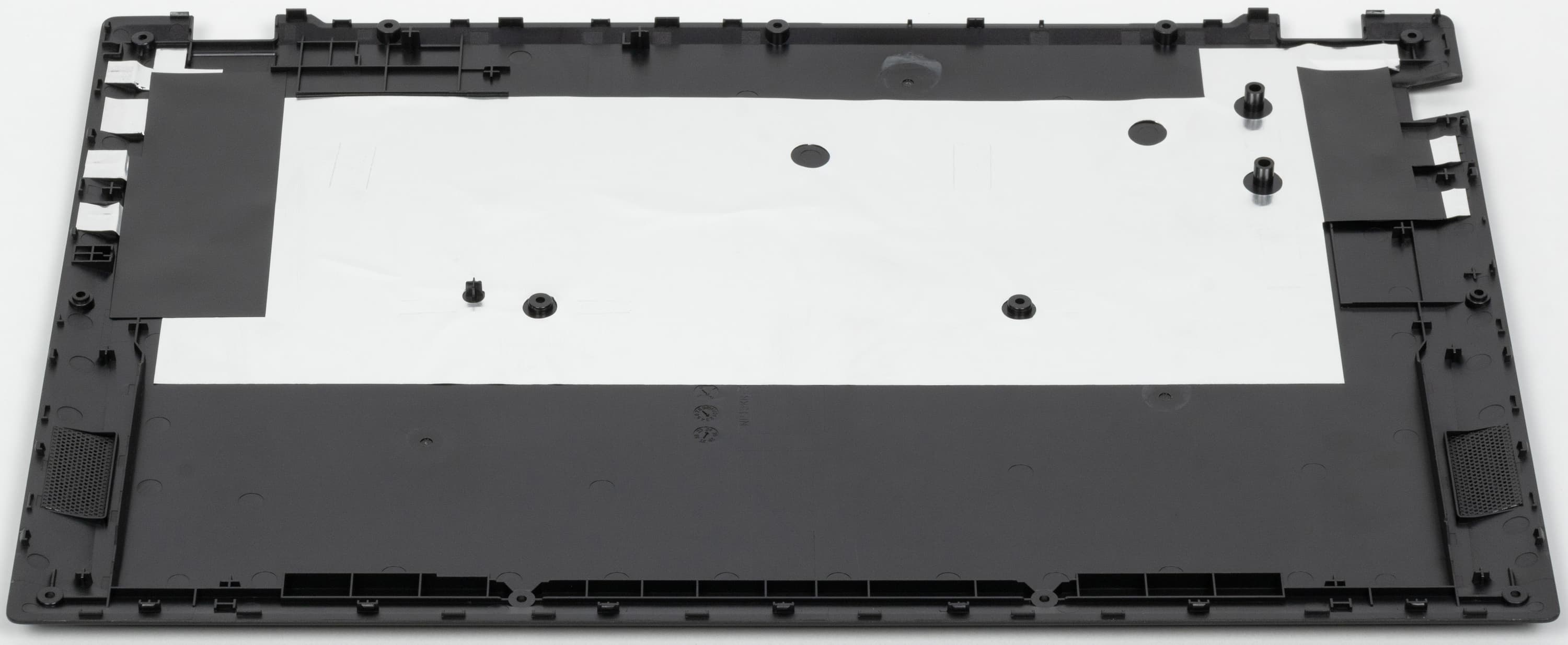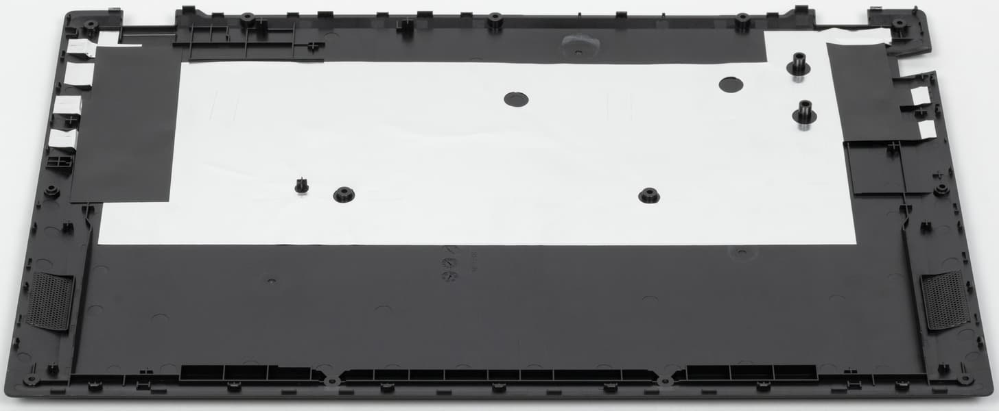 На днище есть лишь четыре небольшие ножки и дополнительный выступ-упор в задней части, привычных по подавляющему большинству ноутбуков областей с вентиляционными отверстиями нет, как нет их и на других частях корпуса.