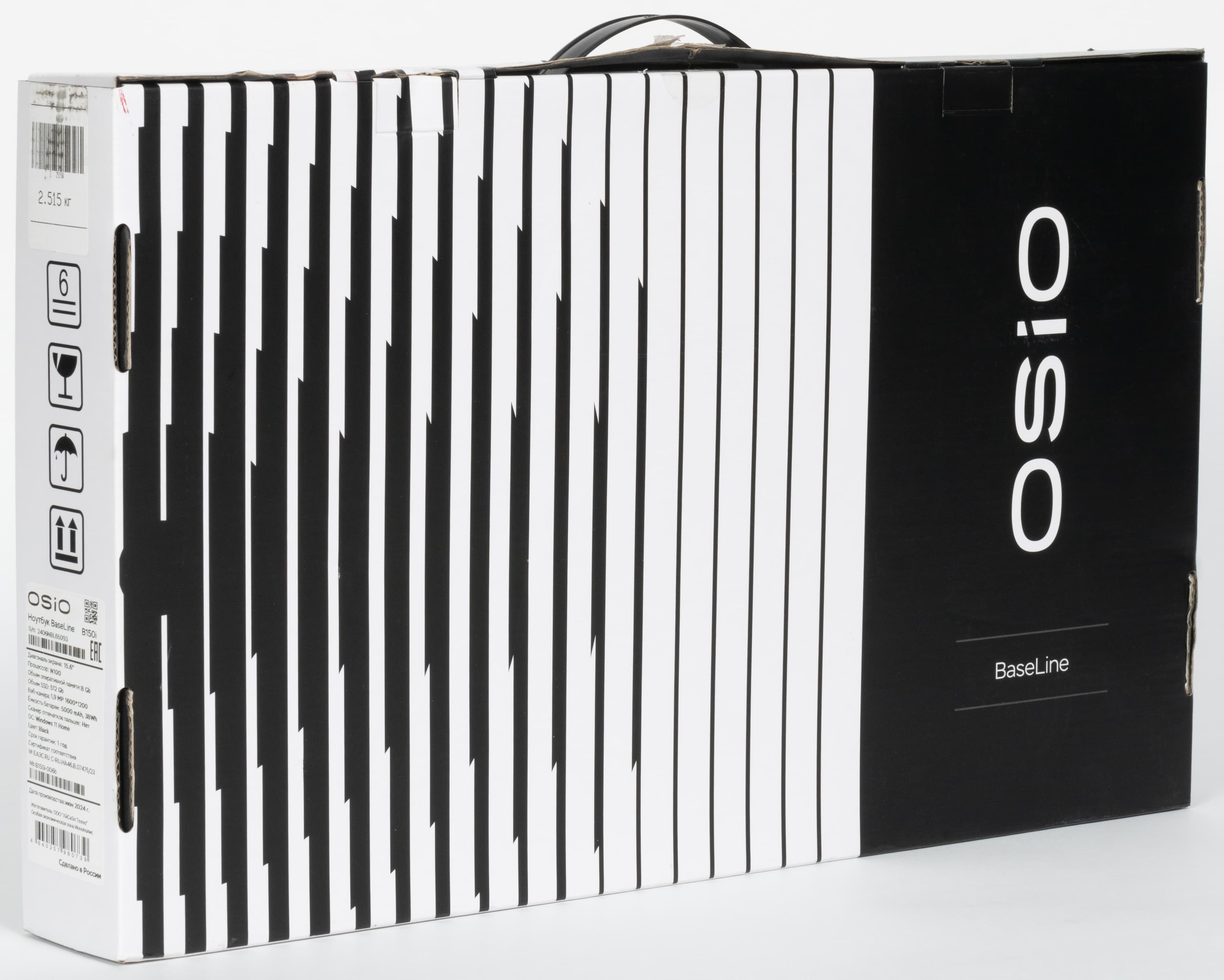 Один из самых свежих образцов такой продукции нам и достался — ноутбук OSiO BaseLine B150i-006b, дополнительный индекс «006» свидетельствует о некоторых особенностях конфигурации, есть также «004», «005», «007». Конечная буква «b» у ноутбуков OSiO обозначает цвет корпуса — черный, могут быть также «s» (серебристый), «с» (синий).
