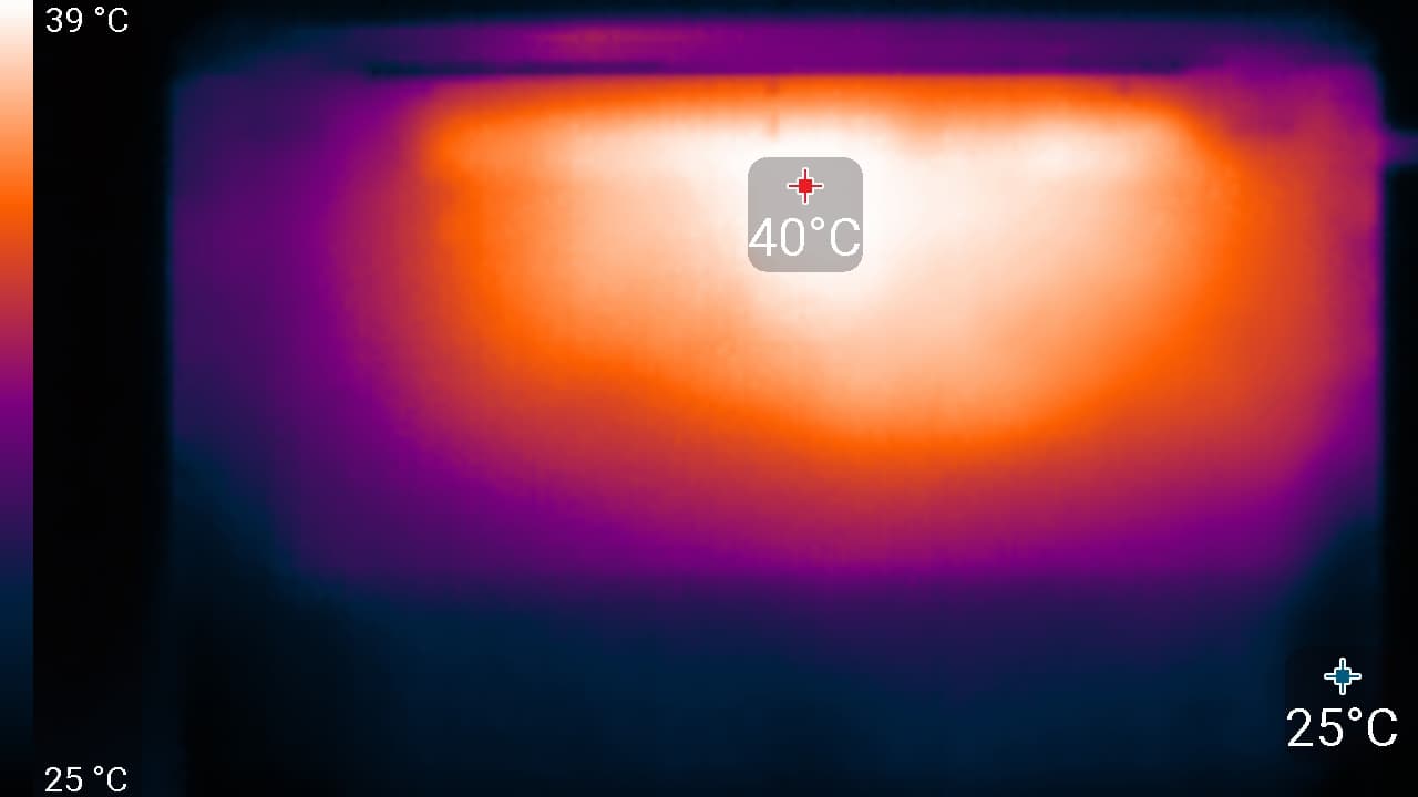 Экран имеет хорошие углы обзора без значительного сдвига цветов даже при больших отклонениях взгляда от перпендикуляра к экрану и без инвертирования оттенков. Однако, черное поле при отклонении по диагонали сильно высветляется и приобретает красно-фиолетовый оттенок.
