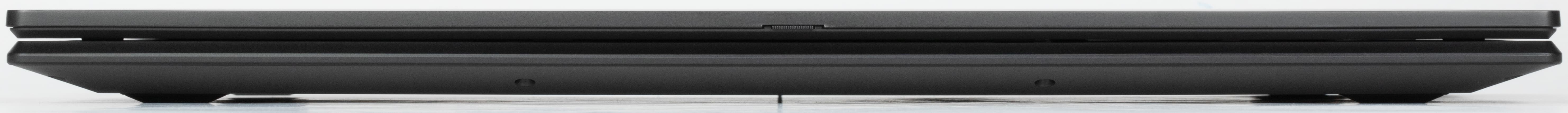 Пластиковую рамку вокруг экрана не назовешь ни очень уж тонкой, ни чрезмерно широкой: по бокам 6,3 мм, вверху 12 мм (там расположена веб-камера со шторкой, но без индикатора), внизу 24 мм до изгиба петли.