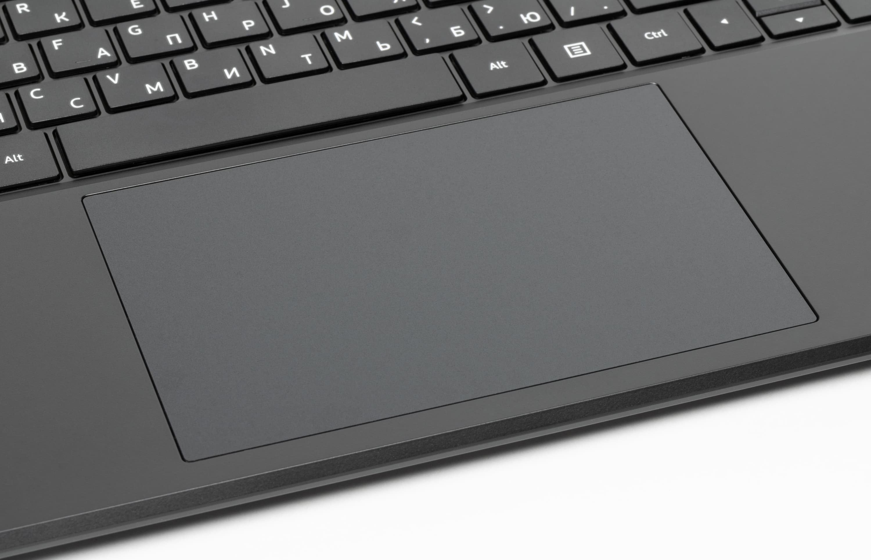 Тачпад очень большой: 140×93 мм, выделенных клавиш нет, но левый и правый ближние его края вполне могут работать как соответствующие кнопки мыши. Поверхность чуть заглублена.