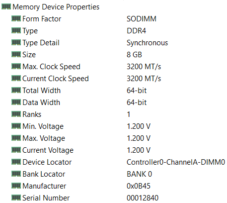 На системной плате установлен модуль DDR4-3200, свободного слота нет, то есть нарастить память можно, но лишь с заменой имеющегося SO-DIMM и только до 16 ГБ — больше не поддерживает процессор.