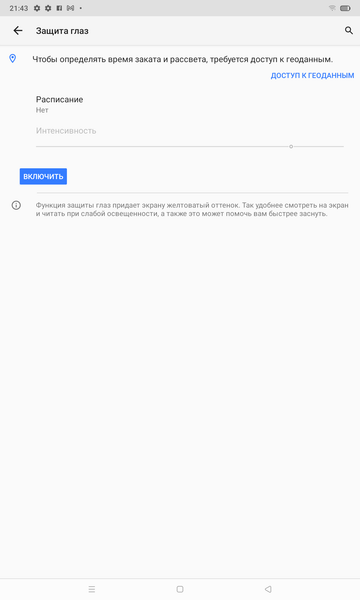 Также присутствует настройка (Защита глаз), позволяющая снизить интенсивность синей компоненты.