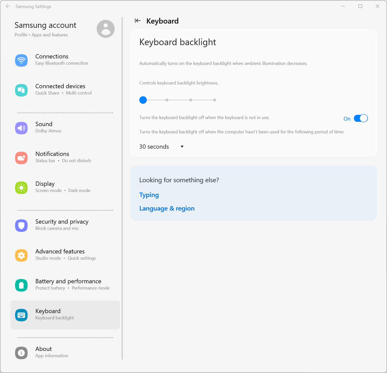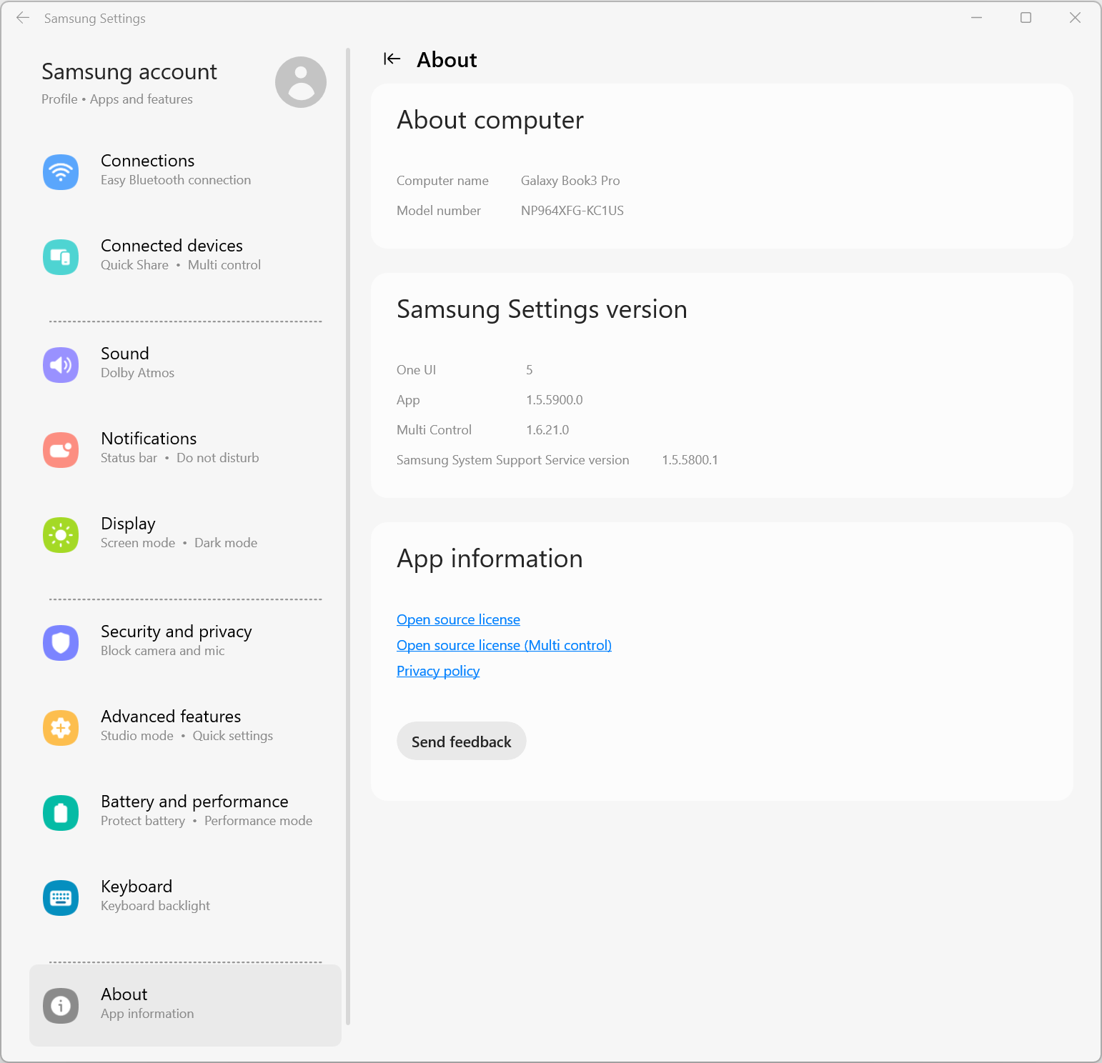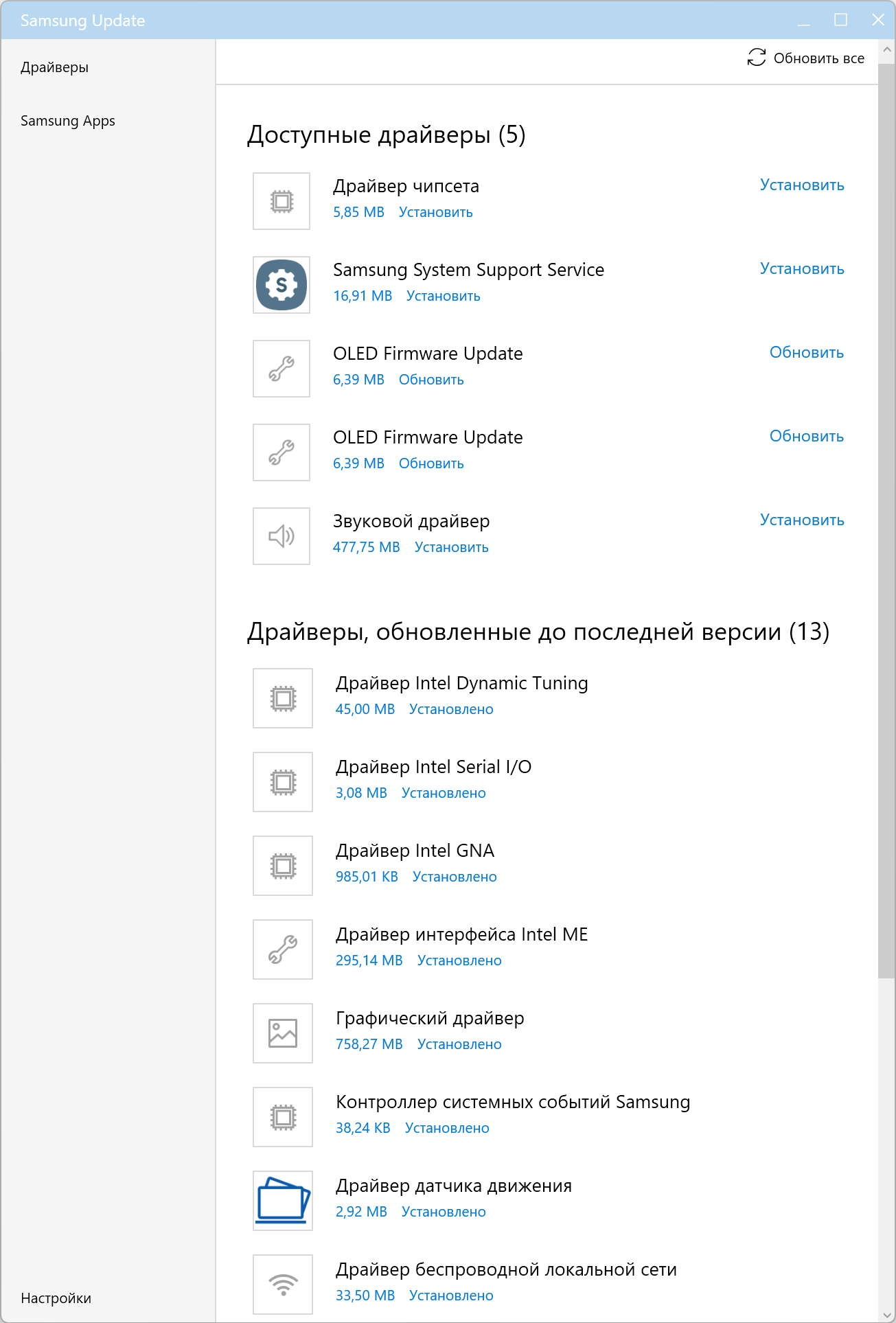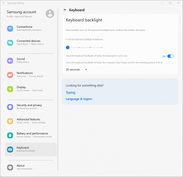 Ноутбук поставляется с ОС Windows 11 Home (домашней редакции), набором фирменных приложений, триал-версией MS Office и множеством проприетарных вспомогательных программ: Galaxy Book Experience, Galaxy Book Smart Switch, Samsung Bluetooth Sync, Samsung Flow, Samsung Notes, Samsung Recovery, Samsung Settings, Samsung Update. От этого изобилия просто рябит в глазах.