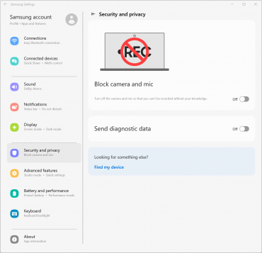 - Samsung Pass для парольного доступа к веб-сайтам при помощи сканера отпечатков пальцев ноутбука