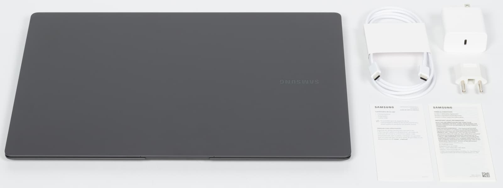 Комплект поставки «бедный, но гордый»: само устройство, блок питания и кабель для подключения к нему ноутбука с разъемами USB Type-C на обоих концах. Производители победнее, чем Samsung, доложили бы к этому хотя бы салфетку для очистки экрана.