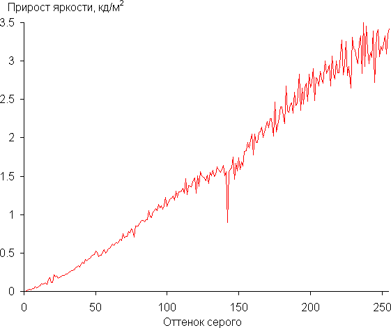 Видно, что на максимальной и средней яркости скважность модуляции низкая, в итоге видимого мерцания нет. Однако при сильном понижении яркости появляется модуляция с высокой скважностью, ее наличие уже можно увидеть в тесте на присутствие стробоскопического эффекта или на некоторых изображениях просто при быстром движении глаз. В зависимости от индивидуальной чувствительности такое мерцание может вызывать повышенную утомляемость. Впрочем, фаза модуляции различается по зонам, поэтому негативный эффект от мерцания снижен, к тому же в большинстве случаев ноутбук можно эксплуатировать с достаточно высоким уровнем яркости, когда мерцания еще нет.