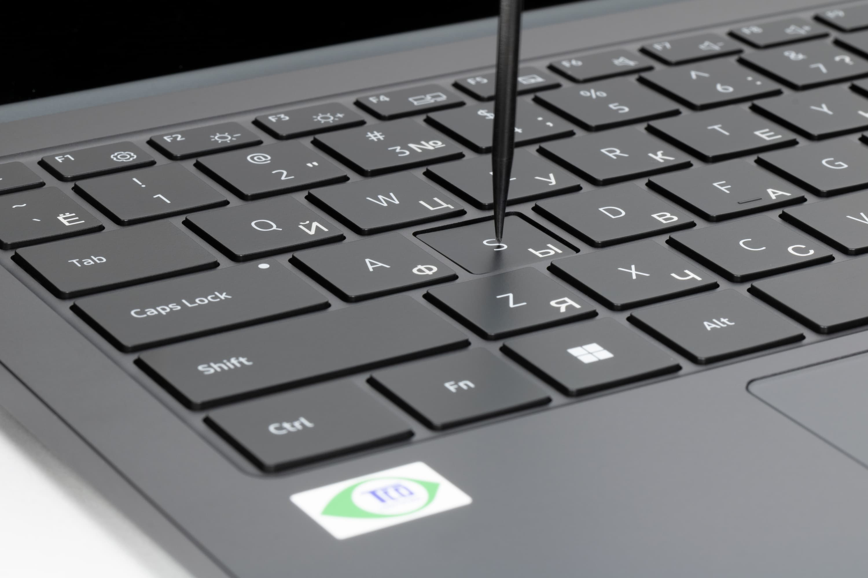 В ноутбуке используется клавиатура мембранного типа с небольшим (около 1,5 мм) вертикальным ходом кнопок.