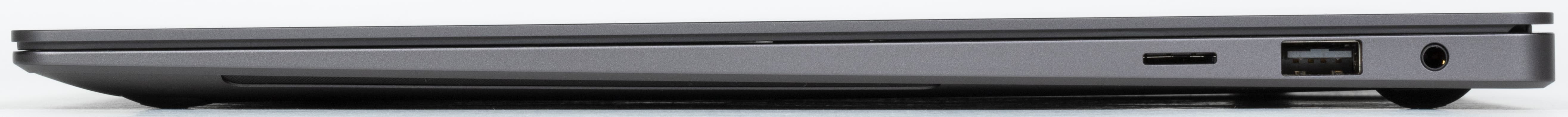 На правой боковой панели имеются картовод для microSD (TransFlash), порт USB 3.2 Gen1 Type-A и комбинированный разъем 3,5 мм для подключения аудиогарнитуры.