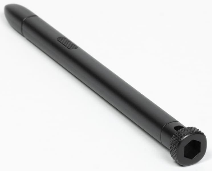 Сам стилус нам уже знаком, в целом он имеет стандартные функциональность и дизайн. Его верхняя часть — эдакая мелкоребристая «шайбочка» — существенно более широкая, чем основная. Выглядит это не очень изящно, но за нее удобно тянуть стилус из чехла, а под этой «шайбой» есть отверстие, через которое можно продеть шнурок на руку.