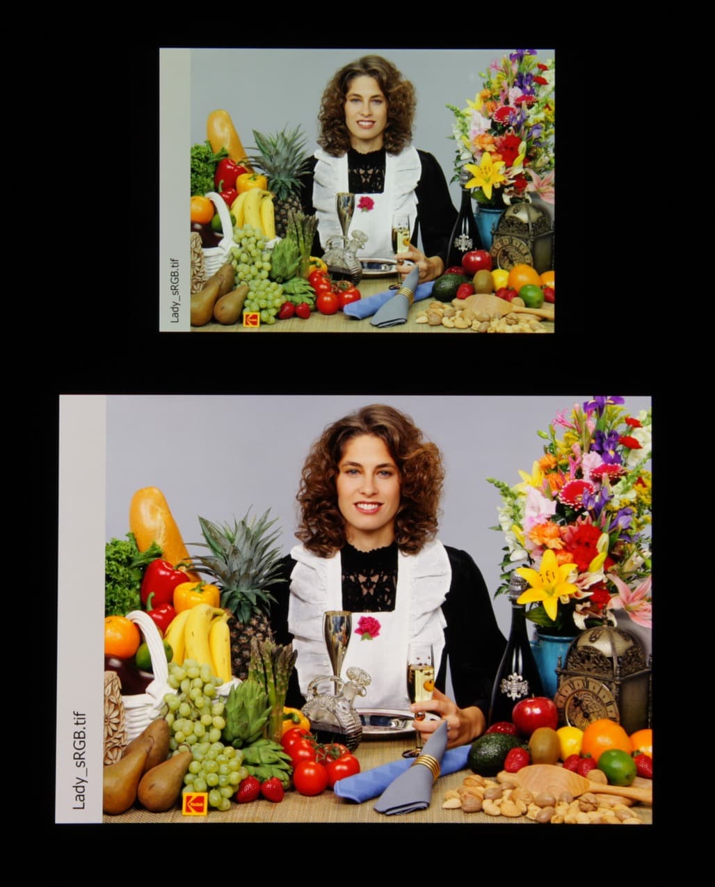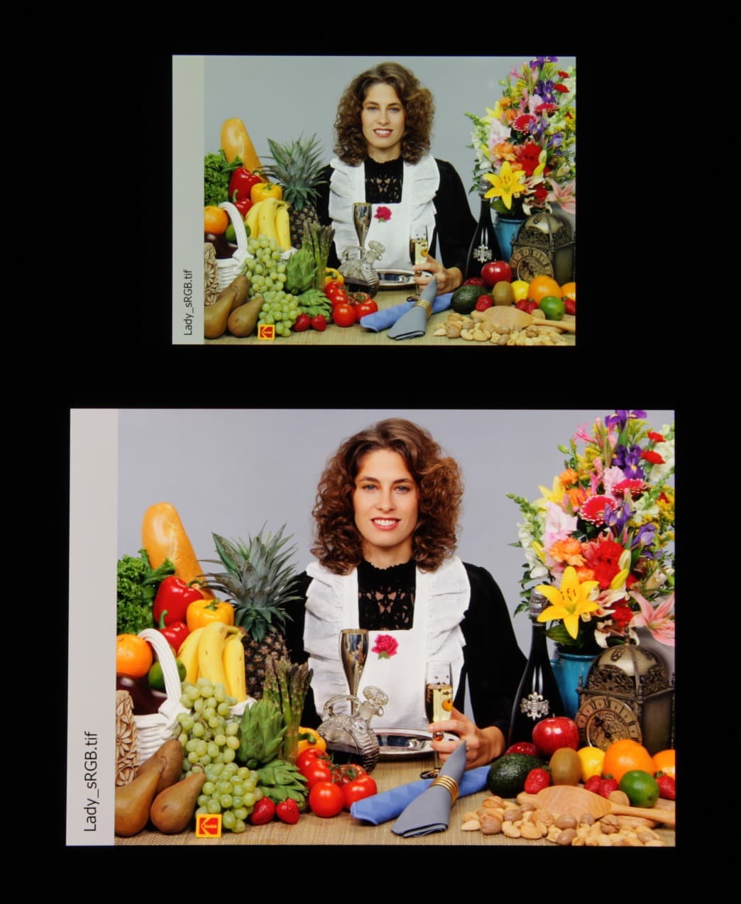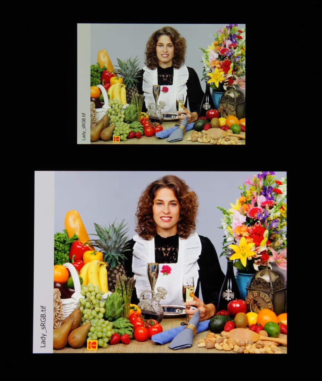 Отметим, что на экранах с широким цветовым охватом (без соответствующей коррекции) цвета́ обычных изображений, оптимизированных для устройств sRGB, выглядят неестественно насыщенными. Отсюда и рекомендация: в большинстве случаев смотреть кино, фотографии и все естественное лучше при выборе профиля Основной, и только если фотография сделана на установке Adobe RGB, имеет смысл переключить профиль на Фото AMOLED. Аналогично, профиль Фильм AMOLED уместен при просмотре видеоматериала с охватом DCI-P3, принятым в цифровом кинематографе.