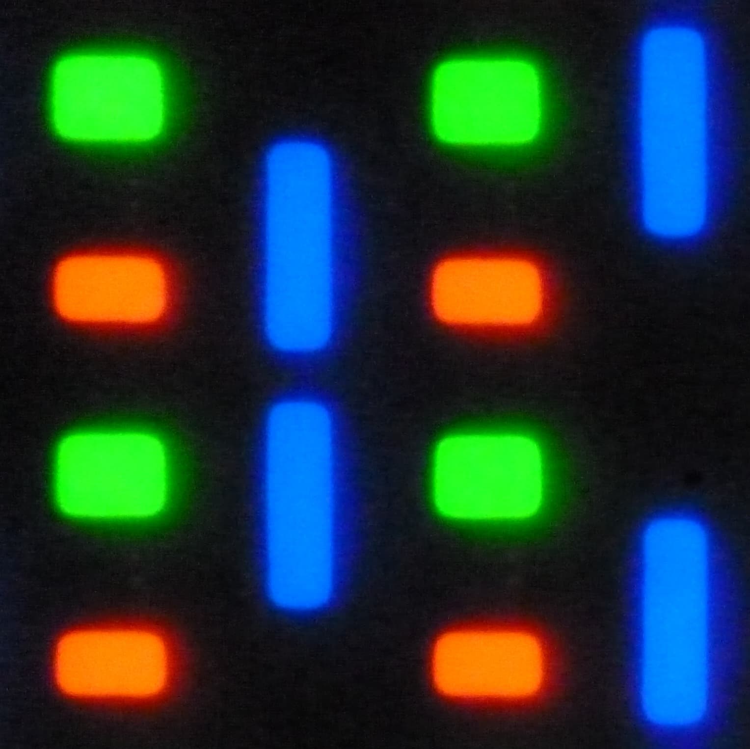 Равное количество субпикселей обуславливает отсутствие артефактов, типичных для матриц типа PenTile RGBG с уменьшенным в два раза количеством синих и красных субпикселей.