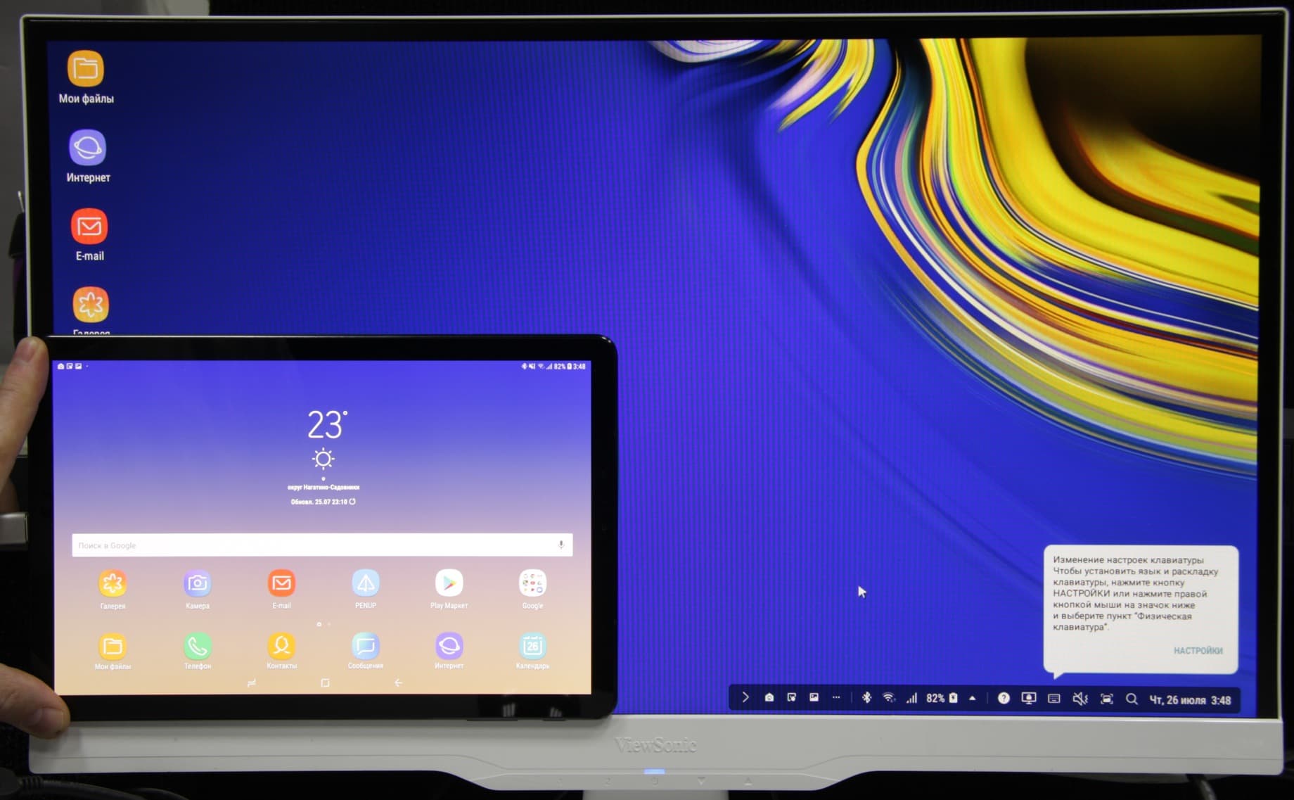 В десктопном режиме вы можете открывать одновременно несколько окон, размещая их на рабочем столе так же, как в Windows и macOS, пользоваться правой кнопкой мыши и т. п. В общем, планшет превращается действительно в некое подобие системного блока. Подробнее об этом, а также об аксессуарах, которые можно купить для использования планшета в десктопном режиме, мы расскажем в отдельной статье.