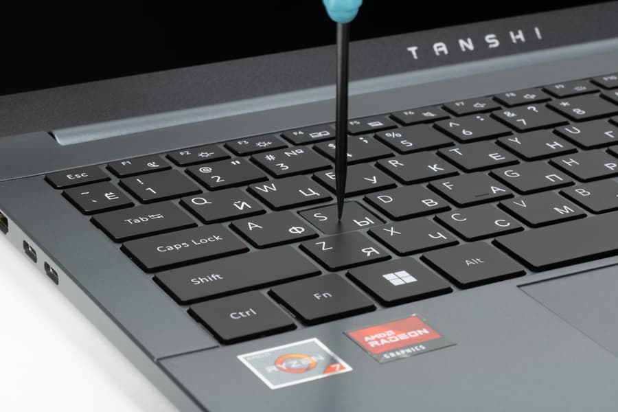 В ноутбуке установлена клавиатура традиционного мембранного типа, по раскладке и функциональности не сильно уступающая стандартной десктопной. Алфавитно-цифровые и символьные кнопки крупные (15×15 мм), расстояние между их центрами составляет 17 мм, а между краями — 2 мм. Пробел достаточно большой (90 мм). Ширина правой Shift — 42 мм, левой Shift — 35 мм, Enter — 38 мм. Имеется цифровой блок с почти полным набором клавиш, но все его кнопки уменьшены по ширине по сравнению с остальными (15×8 мм). Вертикальные «стрелки» наполовину меньше стандартных по высоте. Маркировка клавиш удачная: символы национального алфавита одного размера с латинскими, но выглядят несколько толще и потому заметнее.