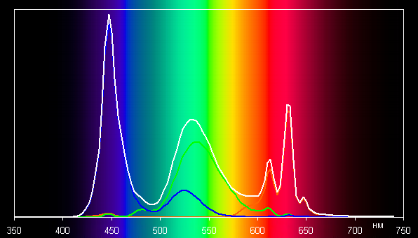 Спектры показывают, что светофильтры матрицы в умеренной степени подмешивают компоненты друг к другу: