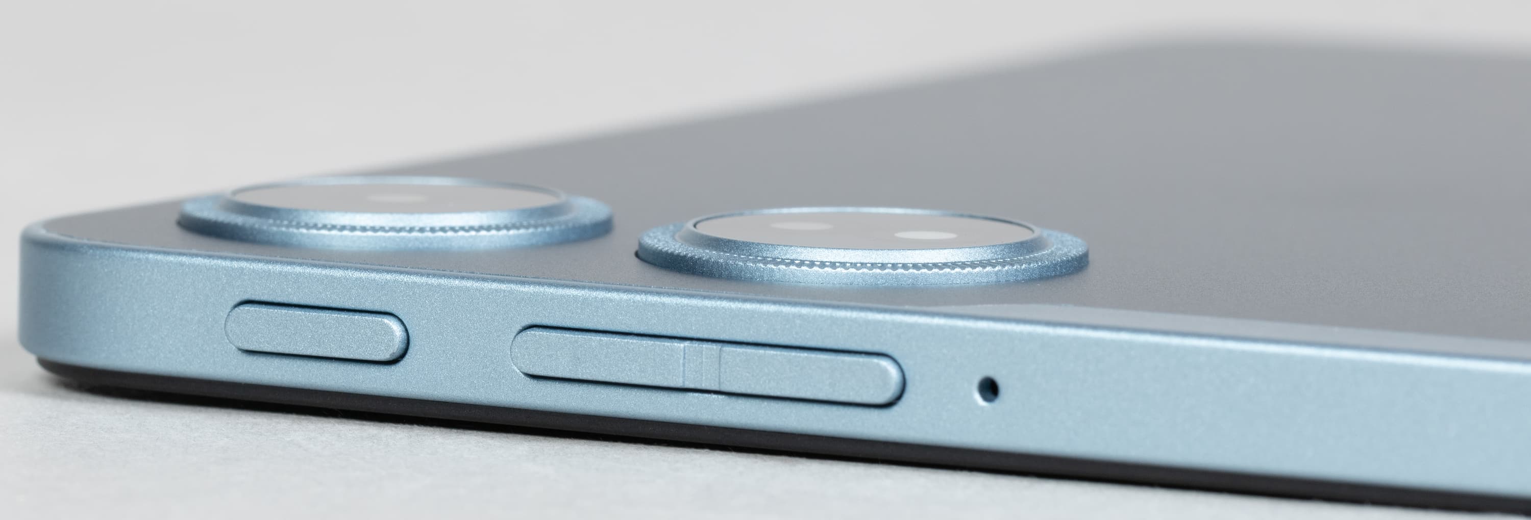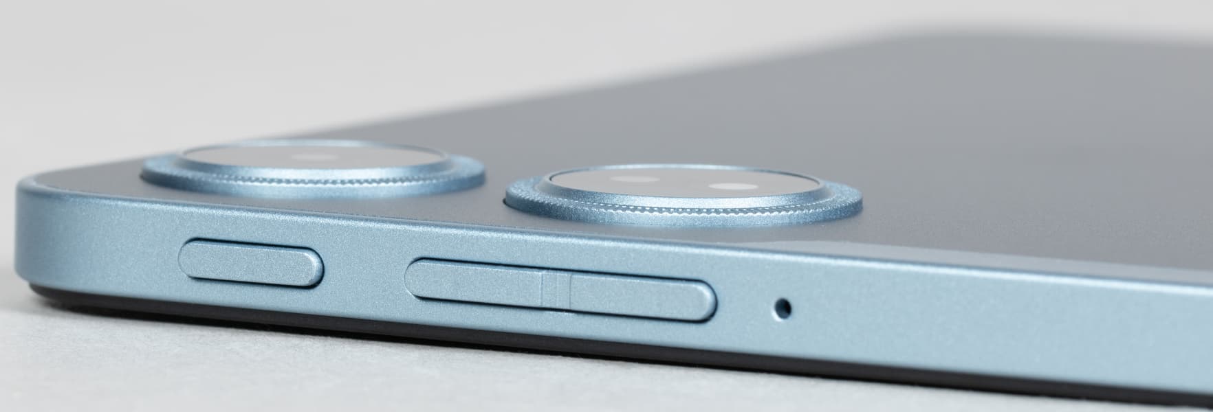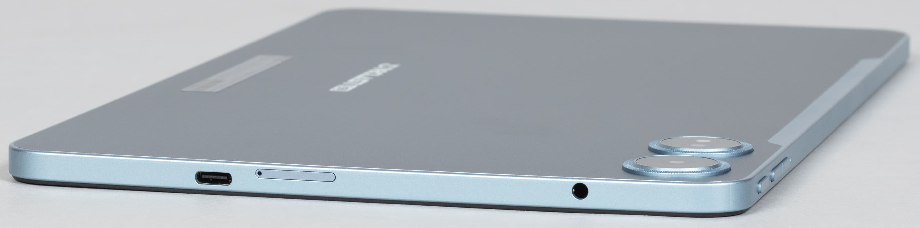 На левой грани размещены разъем USB-C (с поддержкой внешних накопителей), слот для двух карт Nano-SIM, одну из которых можно заменить на microSD, а также гнездо для гарнитуры 3,5 мм. Последнее мы приветствуем, учитывая, что многие производители планшетов от него отказываются, а в данном случае его наличие означает возможность не только использовать проводную гарнитуру, но еще и слушать FM-радио, используя наушники как антенну. Что касается USB-C — любопытно, что разъем сильно сдвинут к фронтальной стороне, что особенно заметно на контрасте со слотом для карточек рядом.